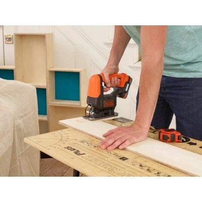 Mit der Black+Decker Akku-Stichsäge BDCJS12N werden persönliche DIY Projekte zum Erfolg. Die kompakte Bauweise und ein geringes Gewicht sorgen für einen optimalen Arbeitskomfort und eine maximale Kontrolle während der Anwendung. Dank Sägeblasfunktion und optimal positioniertem Schutzbügel (Sichtlinie) besteht jederzeit gute Sicht auf die Schnittlinie. Die integrierte Schalterelektronik sorgt für einen kontrollierten Start der Säge und materialgerechtes Arbeiten.