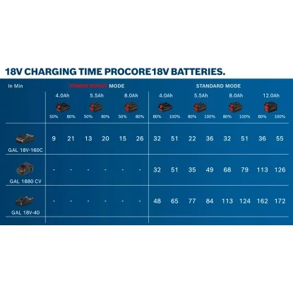 Der Bosch Professional Akkupack ProCore 18 V/8 Ah ist ein leistungsstarker Akku der Bosch ProCore18V-Reihe, der die Power eines 1.600 W-Netzgerät liefert. In Kombination mit dem intelligenten Akku-Management von Bosch liefert die neuartige Zellentechnologie dieses Modells 87% mehr Leistung als konventionelle Akkus.