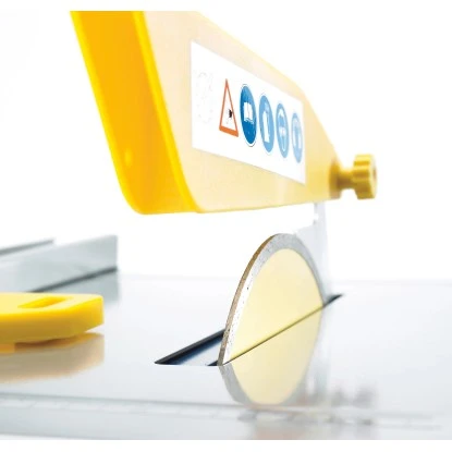 Der kompakte CMI Fliesenschneider C-FSM-180/600 mit 600 W und einer Leerlaufdrehzahl von 2.950/min (Umdrehungen) dient dem Zuschneiden von Wand- und Bodenfliesen. Die Schnitttiefe betrĂ€gt 34 mm bei einem geraden Schnitt von 90° und 18 mm bei einem Winkel von 45°. Aufgrund des geringen Gewichts von nur 9,6 kg ist der Fliesenschneider leicht zu transportieren und schnell einsatzbereit. Die im Lieferumfang enthaltene Wasserwanne sorgt fĂŒr die entsprechende KĂŒhlung der Trennscheibe im Einsatz und wird einfach unter das Trennblatt positioniert.