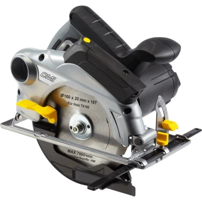 Die CMI HandkreissĂ€ge ist mit einem leistungsstarken 1.200 W Motor ausgestattet und einer Leerlaufdrehzahl von 4.700/min (Umdrehungen). Die SĂ€geblattgröĂe betrĂ€gt 160 mm x 20 mm. Die maximale SchnittkapazitĂ€t betrĂ€gt 55 mm bei 90° und 35 mm bei 45°. Die HandkreissĂ€ge ist fĂŒr eine perfekte SchnittfĂŒhrung mit einem Laser sowie fĂŒr die Sicherheit wĂ€hrend des Arbeitens mit einem Softgrip ausgestattet. Im Lieferumfang ist folgendes Zubehör enthalten: Parallelanschlag, SechskantschlĂŒssel.