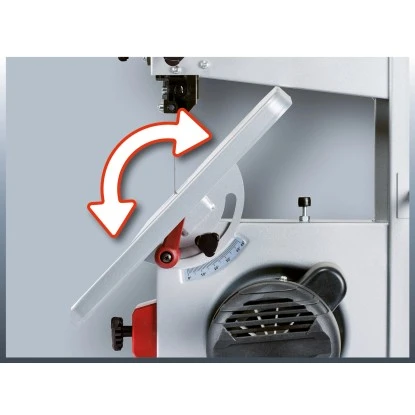 Die Höhenverstellung dient nicht nur präzisen Schnitten. Angepasst an die ideale Arbeitshöhe des Anwenders, dient die Höhenverstellung auch einem sicheren und bequemen Gebrauch. Der mehrfach einstellbare Sägeblattstabilisator reduziert die Sägeblattschwingung und unterstützt damit einen zuverlässigen Gebrauch und bietet zusätzlich ein feineres Schnittbild. Der Sägeblattschutz ist zudem höhenverstellbar und damit an die Stärke des jeweils zu schneidenden Material angleichbar. Der in der Lieferung enthaltende Schiebestock ist unabdingbar für die sichere Arbeit an der Bandsäge. Der Sägetisch ist stufenlos neigbar, so dass auch knifflige Gehrungsschnitte gelingen. Der Parallelanschlag und die kugelgelagerte Führung unterstützen den Hobbyheimwerker bei geraden und präzisen Schnitten.